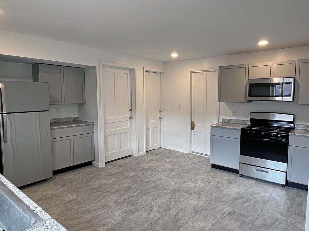 43 Center St. - This four bedroom apartment has a modern kitchen and bathroom. Large living room and bedrooms. Hardwood floors, closets in every room, open, and spacious. Close to bus route and downtown. Off street parking. Laundry in apartment.