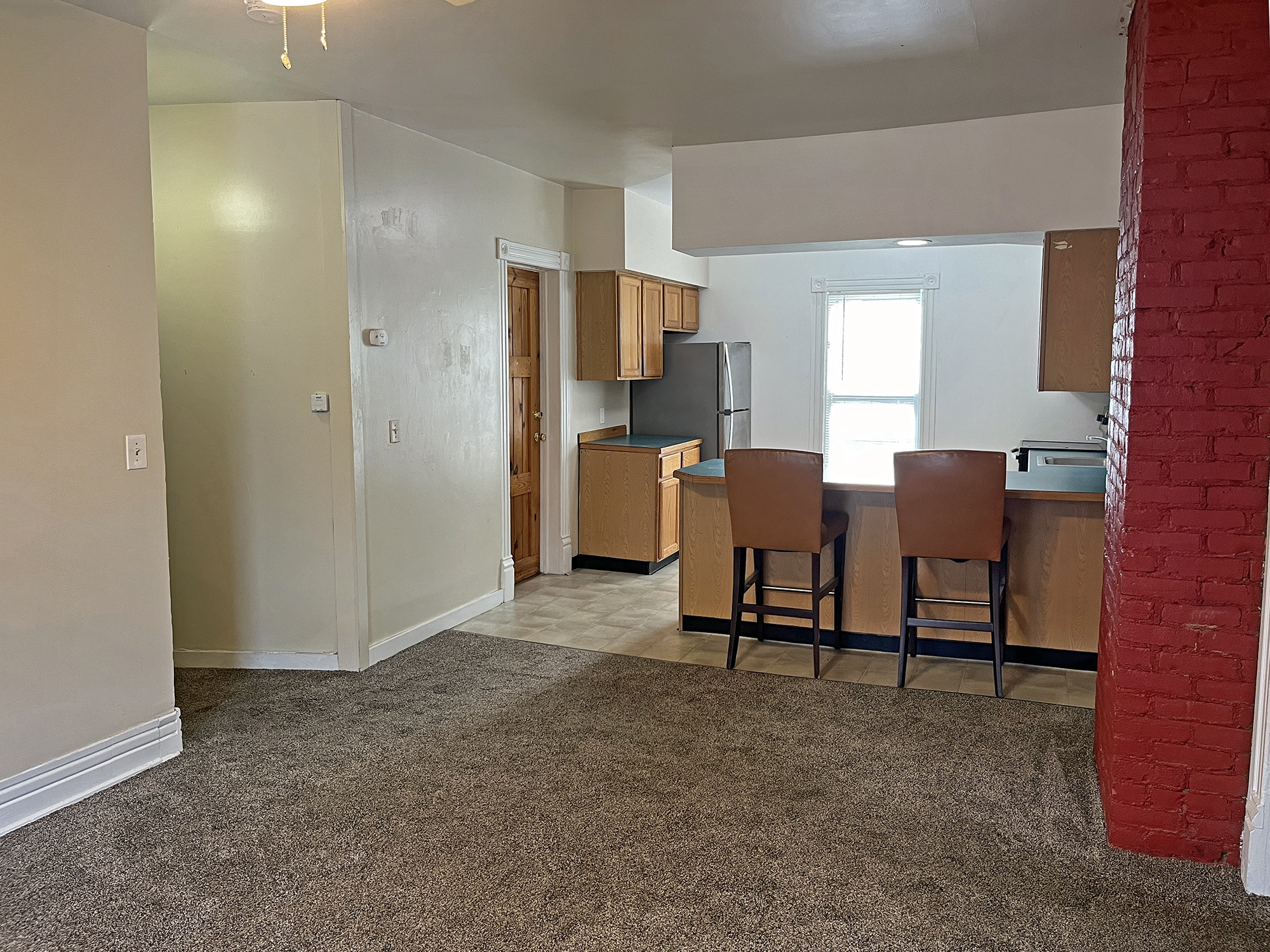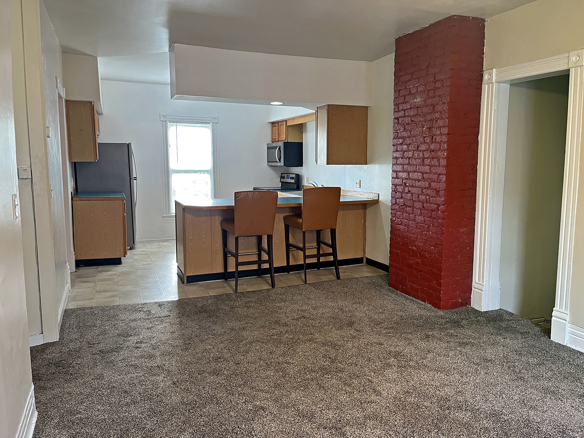 55 Center St. Up - This large 3 bedroom apartment features two baths and a breakfast nook. Modern, open layout with lots of space. Private laundry in apartment. Off Street parking. Close to downtown and bus stop.