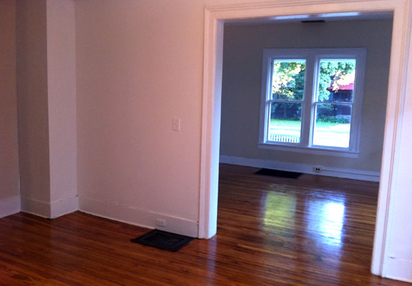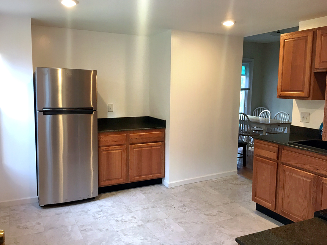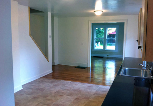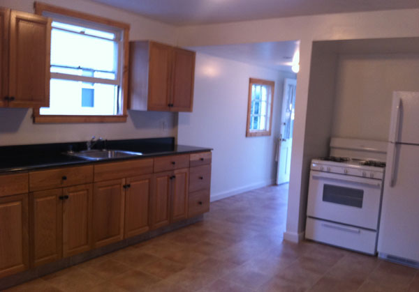 45 Center St. Left - This is a beautiful three bedroom apartment! Newly remodeled! Large living room, dining room and modern kitchen downstairs. Bedrooms and bathroom are all upstairs. Parking is off street, and the Center St./Church St. bus stop is very close. Come take a look before it's too late. Laundry room in the house. (See pictures below)