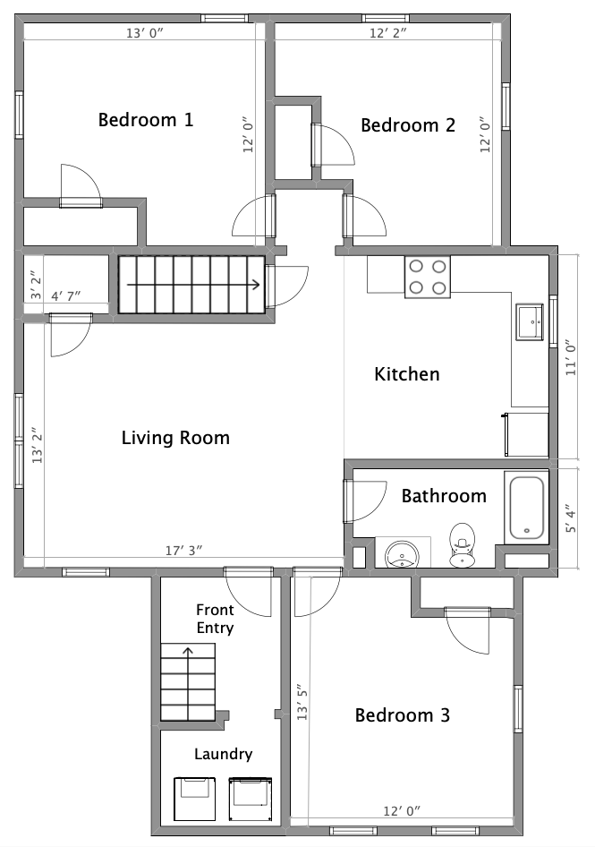 29 Church St. Down - Nice downstairs 3 bedroom apartment. Very open and spacious. Hardwood Floors. Great location near park, downtown, and bus stop. Lots of off street parking in back of house.