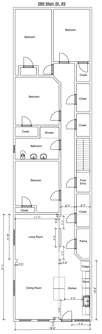 289 Main St #3 - Live within the bright lights of the city of Oneonta, seconds away from the restaurants and shops of downtown. This newly renovated four bedroom apartment is one of the nicest in Oneonta. Large bedrooms and plenty of storage space - a very spacious apartment. New hardwood floors, granite countertops, brand new appliances, and more! Features a modern bathroom, a rear deck, off street parking, and being close to the action - what more could you ask for? Click to enlarge the diagrams and pictures below!