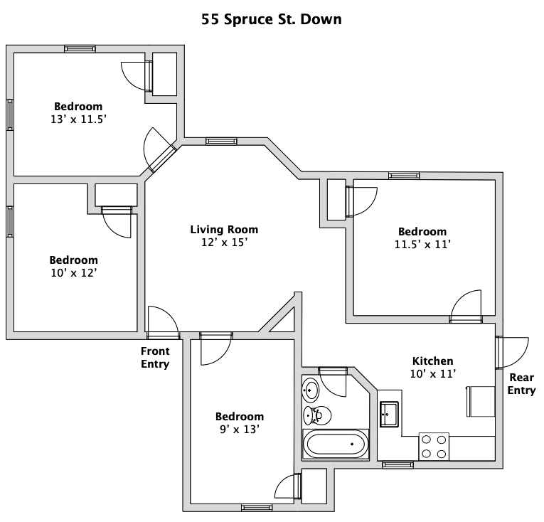 55 Spruce St. Down - This large 4 bedroom apartment has nice bedrooms, a sizable kitchen, and a nice living room. It has a newer bathroom and plenty of room for everything. Laundry in the basement. Convenient location is a quick drive to both Oneonta State and Hartwick colleges. Close to downtown and on bus route. A minutes walk to the Hometown Deli grocery store.